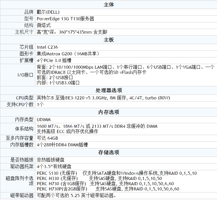 戴爾T330 企業(yè)級塔式服務(wù)器